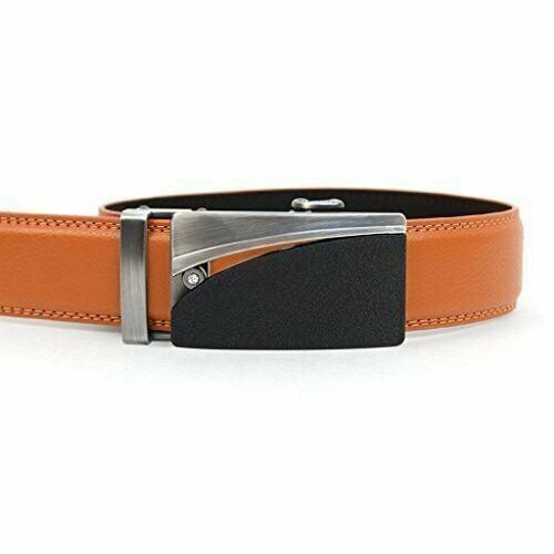 - Men Genuine Leather Sliding Removable Ratchet Buckle Ratchet Belt - Cognac S(32)