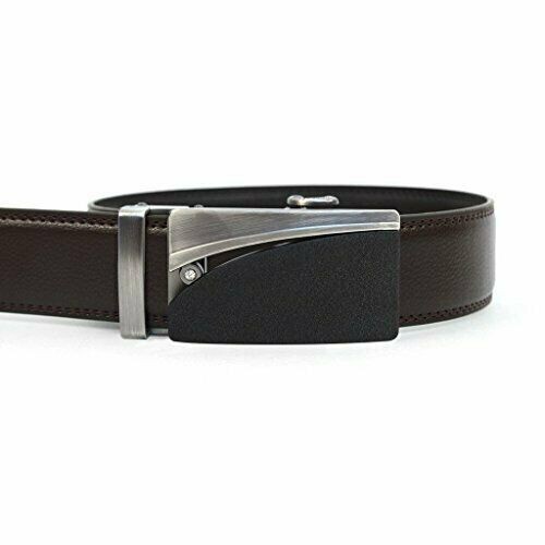 - Men Genuine Leather Sliding Removable Ratchet Buckle Ratchet Belt-Dk Brown XS(30