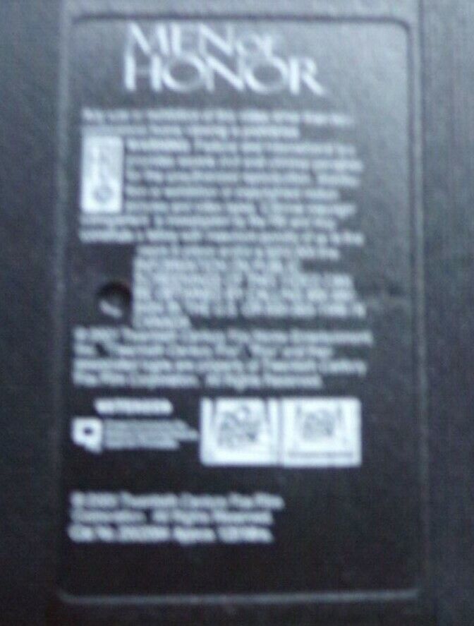 - Men Of Honor Robert De Niro, Cuba Gooding, Jr., Charlize Theron 2000 VHS