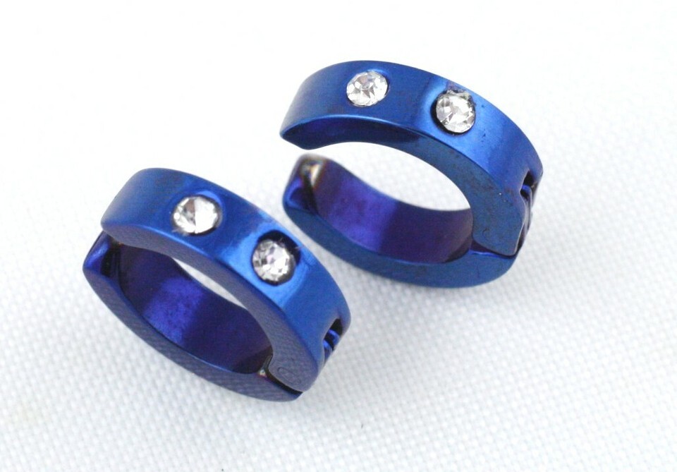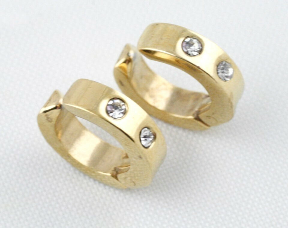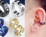 - Men Women Clip On Hoop Earrings,Stainless Steel w/Rhinestone Silver,Gold,Black