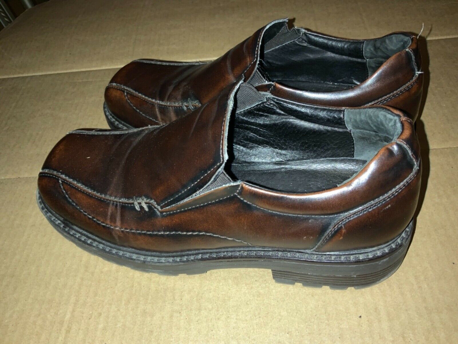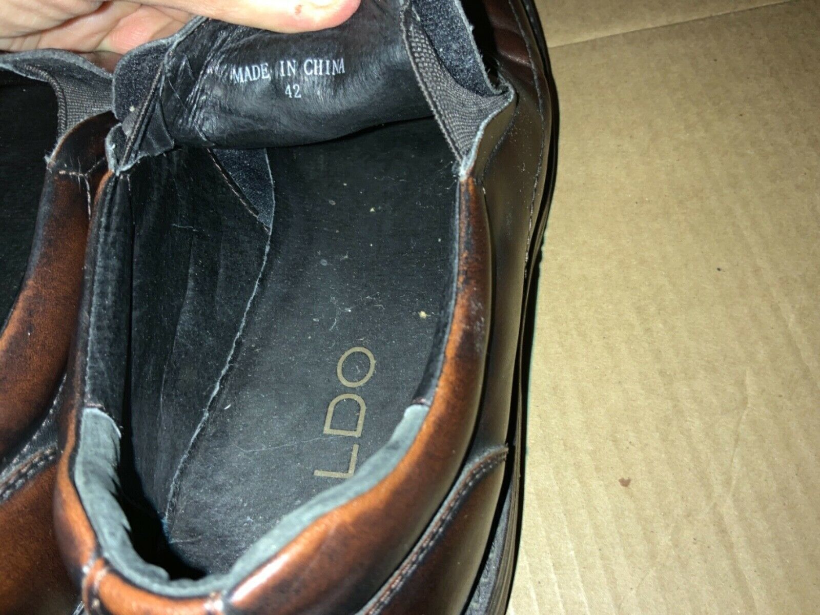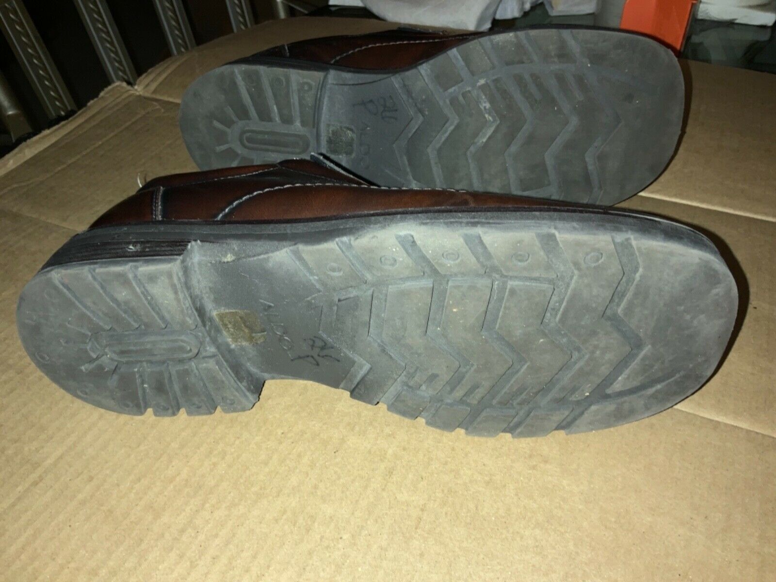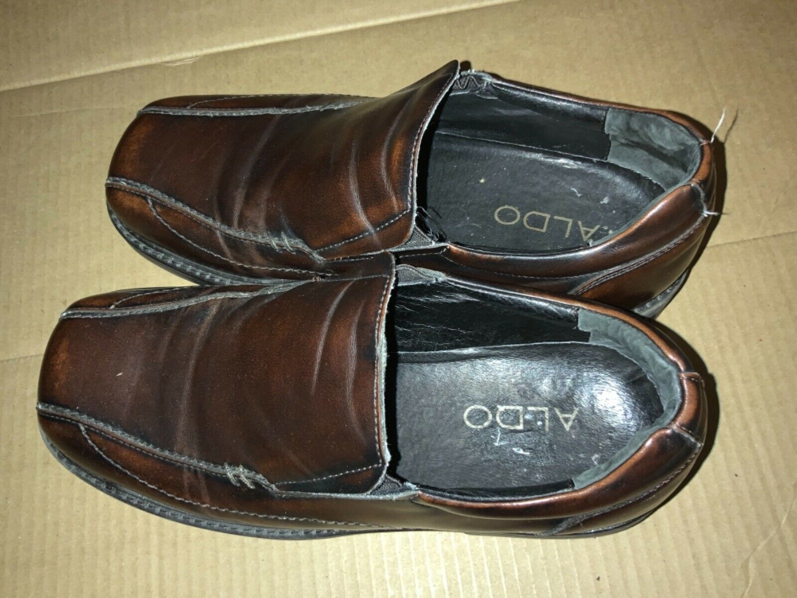 - Men's ALDO Brown Leather Slip Ons Loafers Size 42