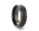 Men?s Black Titanium Wedding Band with Black Sapphire Channel Rose Gold Edges