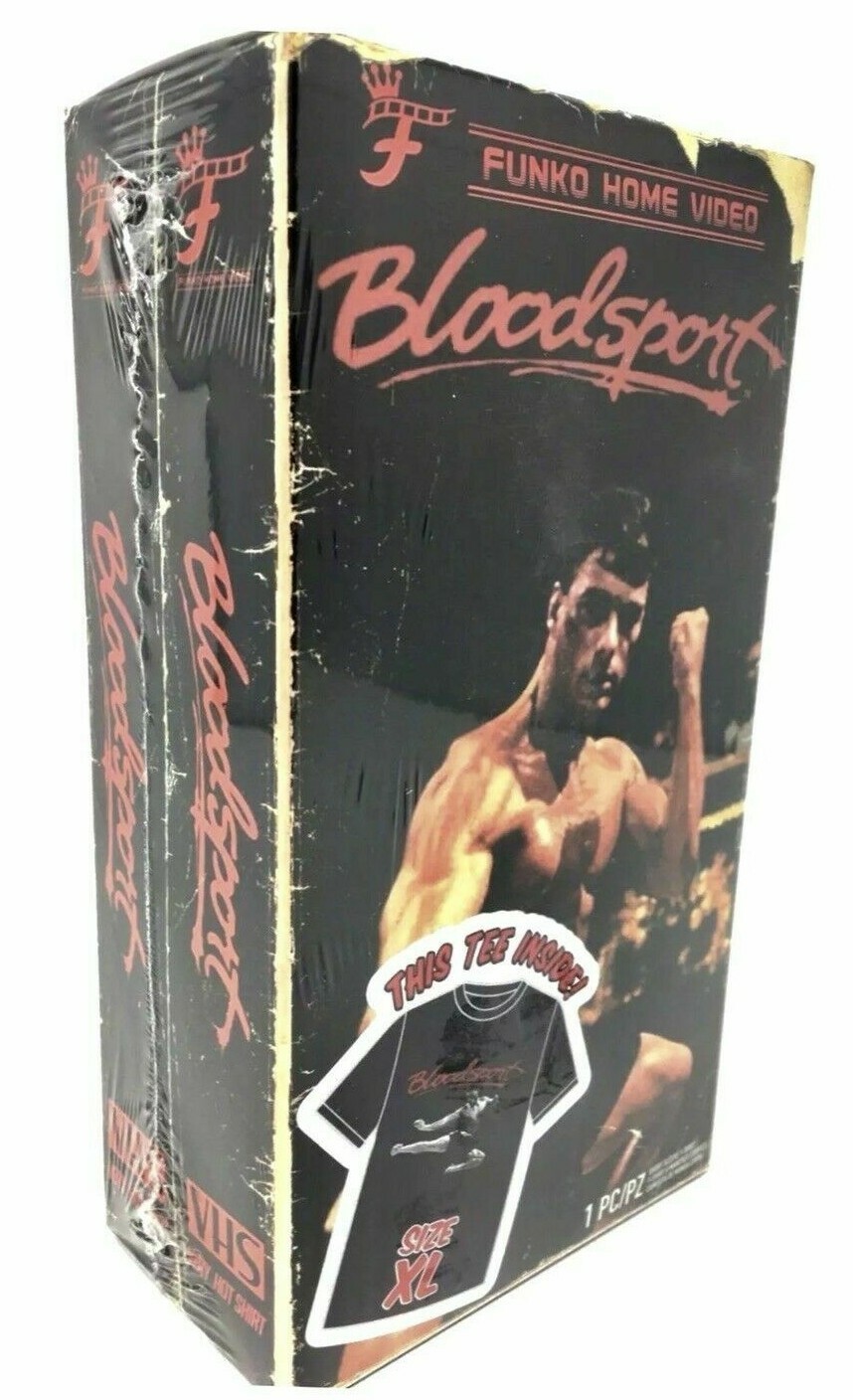 - Men's Blood Sport Funko Home Video VHS Boxed Short Sleeve Tee Exclusive NIB