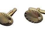 Type: CufflinksWeight: 4.8Karat: 14ktMetal: Yellow GoldGender: Men'sStyle: Art DecoSize / Length: PairOwner applied: 14Stone 1 quantity: 2Stone 1 shape: RoundStone 1 color: ClearStone 1 weight (total): .10Stone 1 type: DiamondCondition:Used