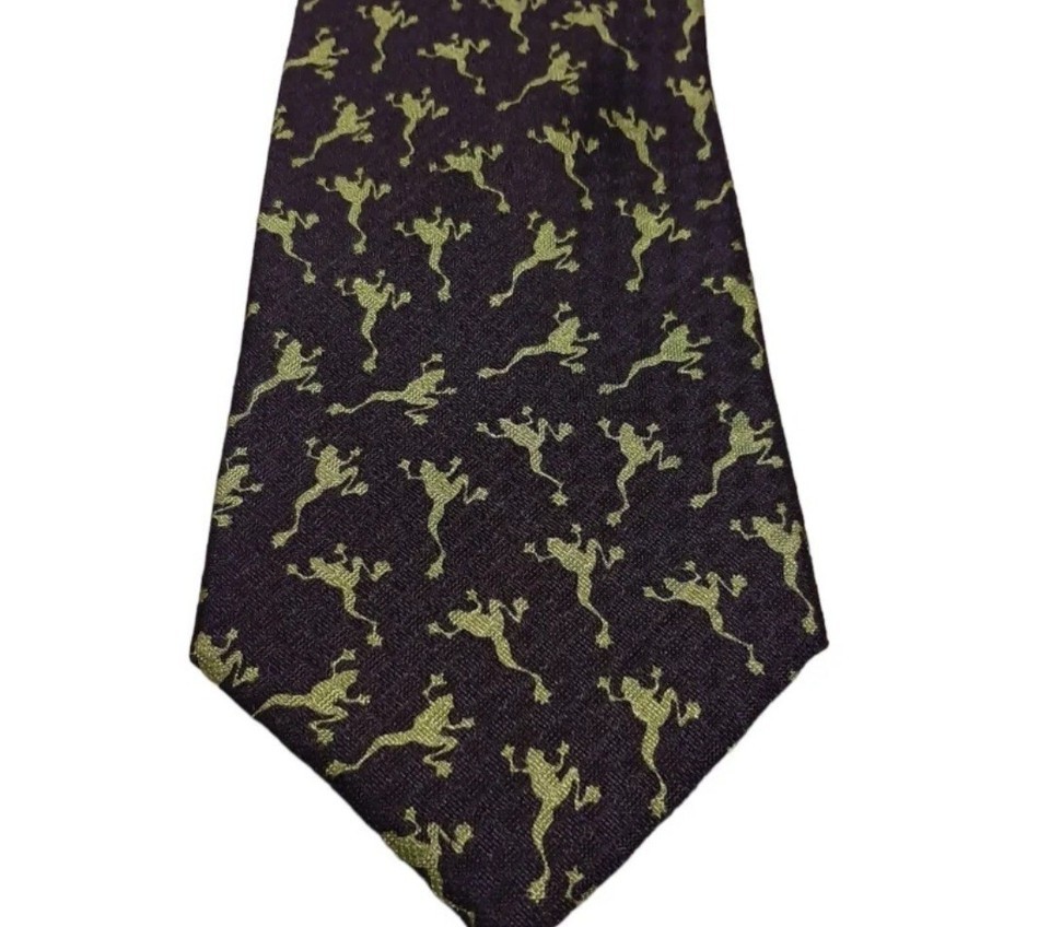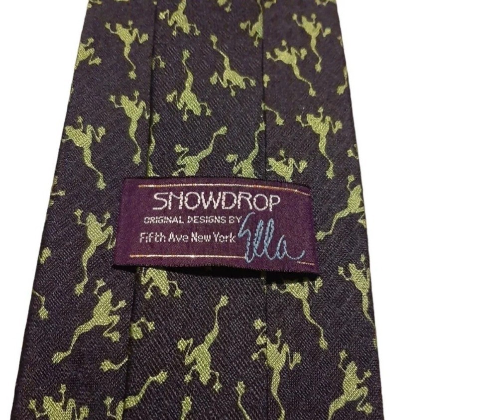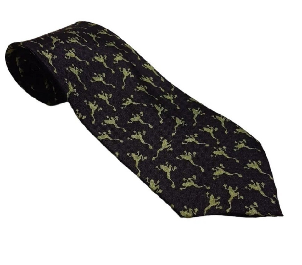 - Men's Dark Blue Silk Neck Tie with Green Frog Design Fifth Ave New York by ELLA