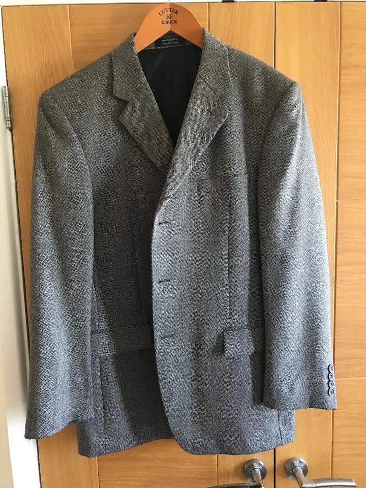 - Men's Grey Herringbone Jacket by Andrew Fezza Size 42 Regular. VGC