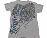 EUC, Excellent Used Condition small gray tee shirt. With Honor written vertically on the left side and an eagle with 3 arrows and an anchor printed on the front in black, white, and blue.