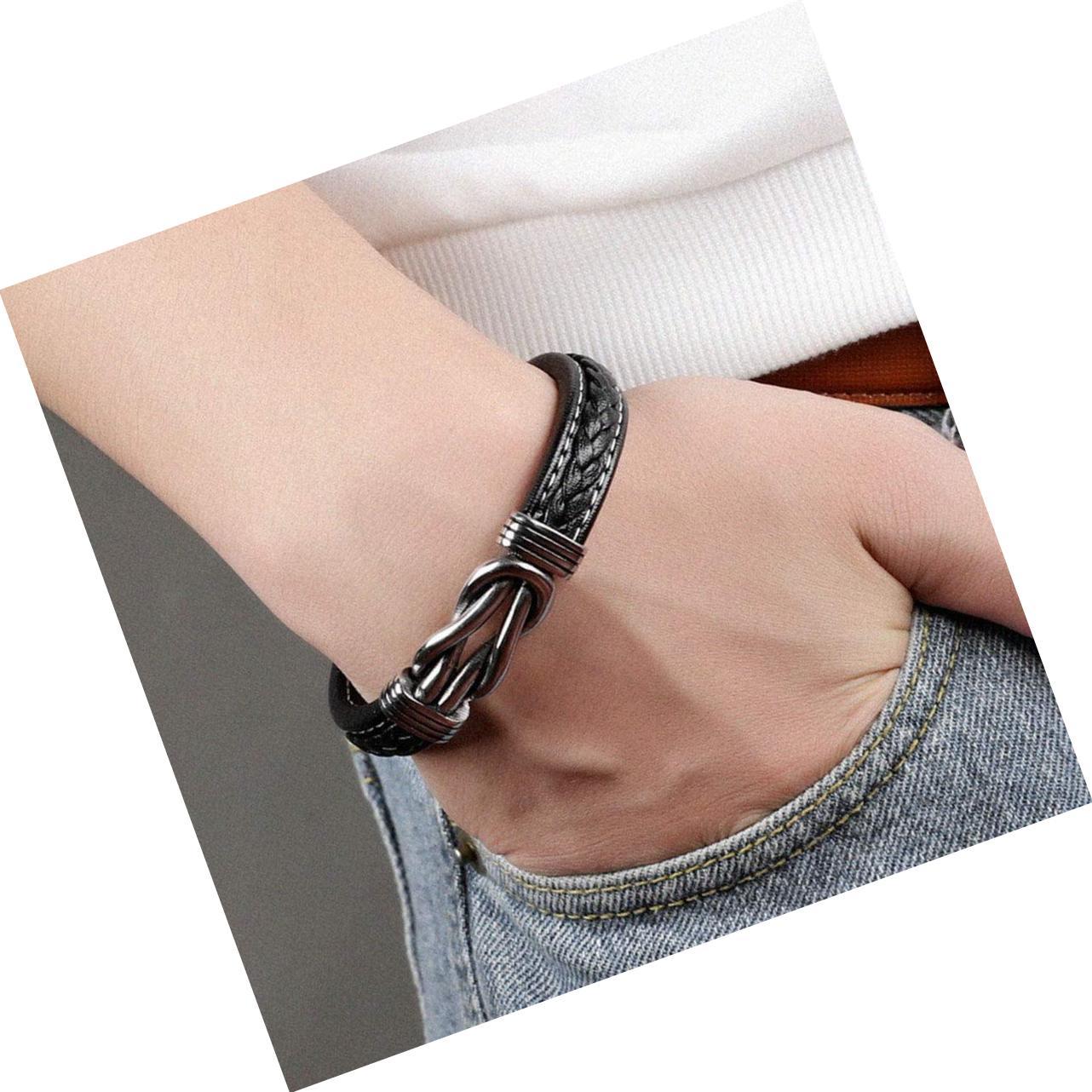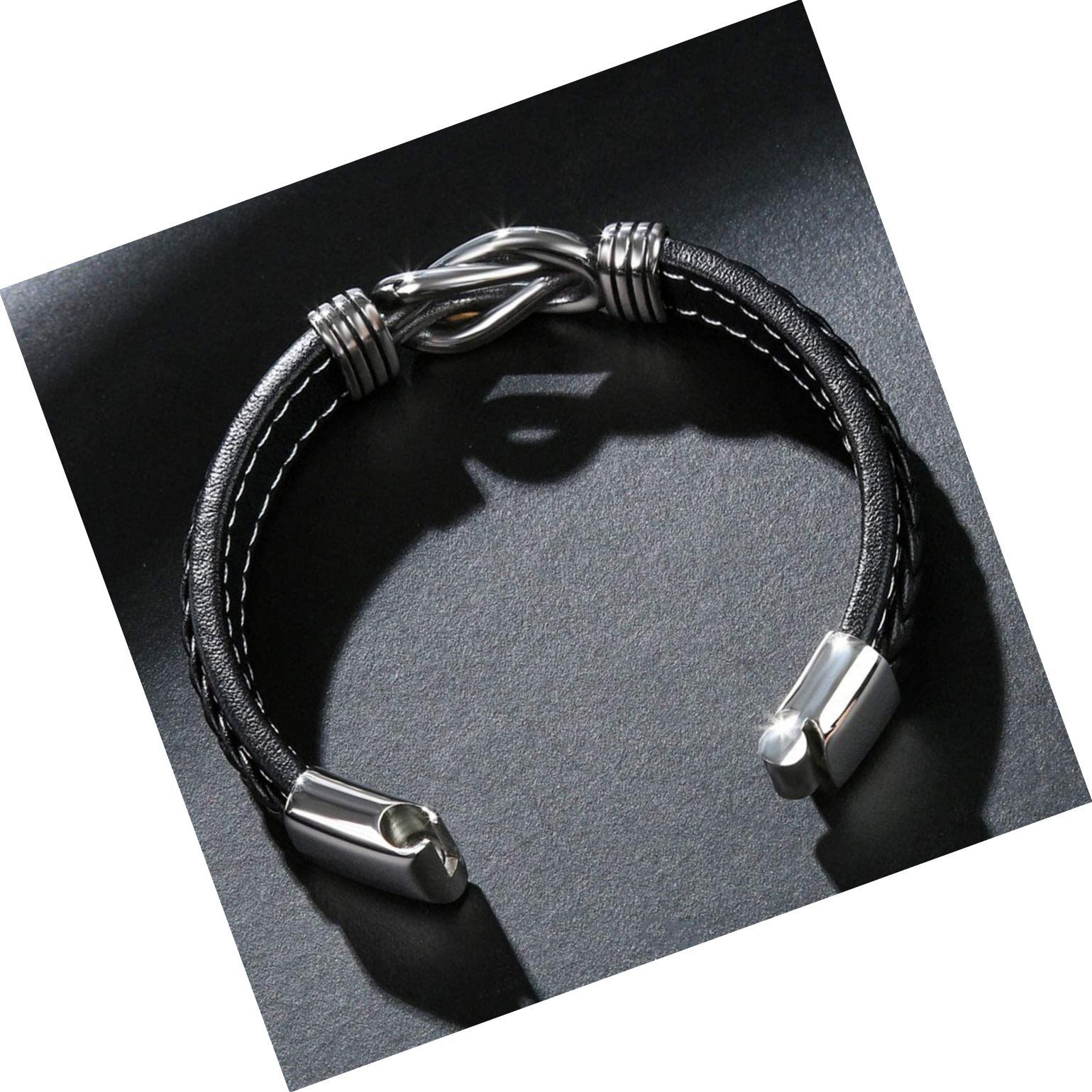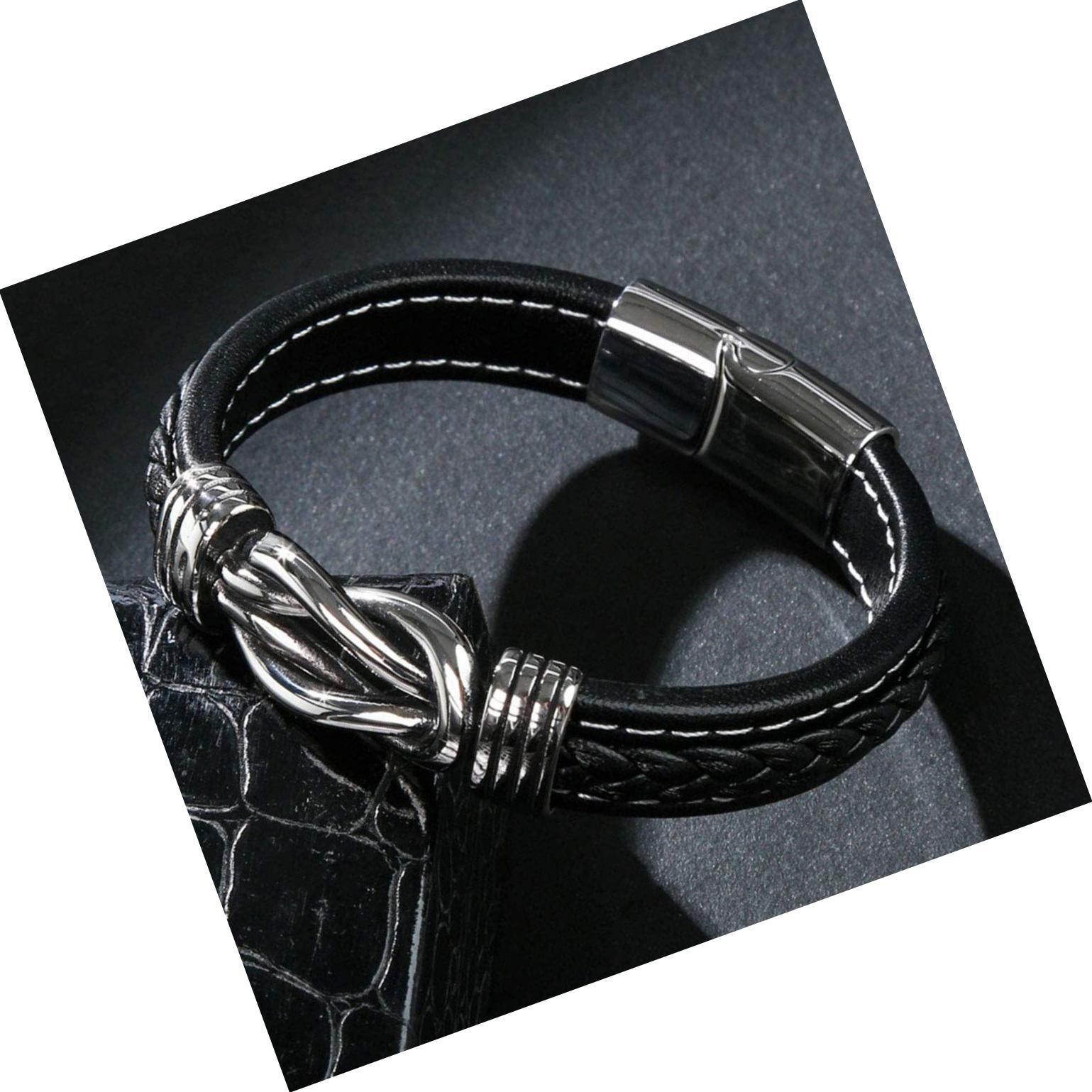 - Men's Leather Bracelet with Stainless Steel Magnetic