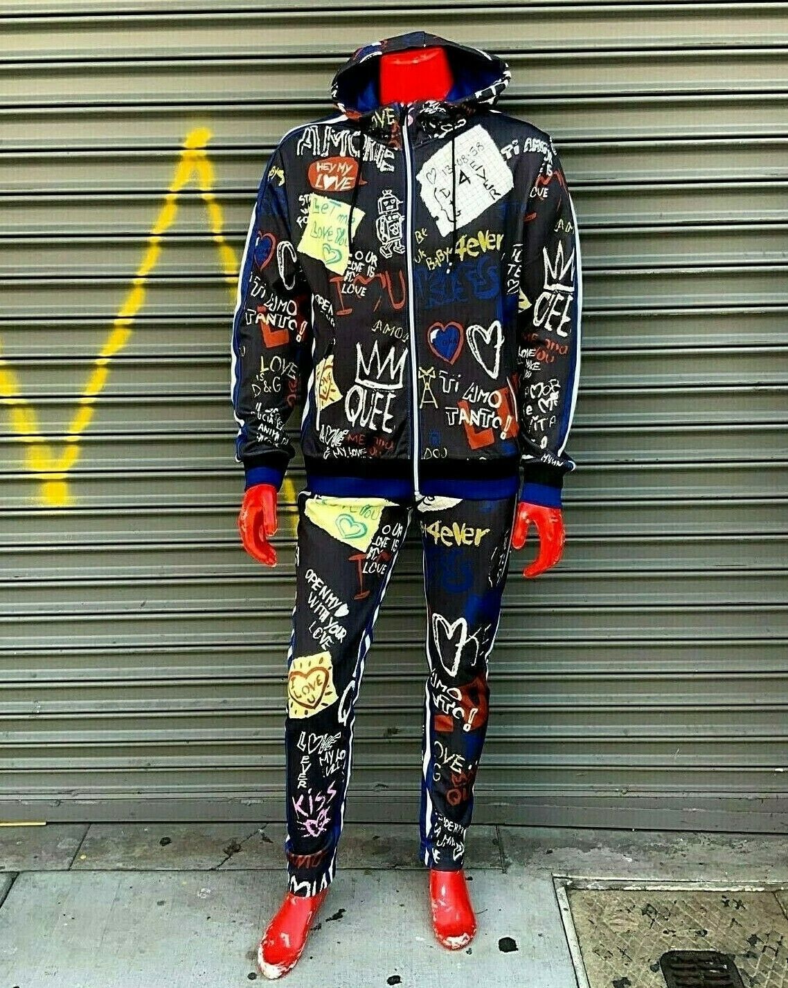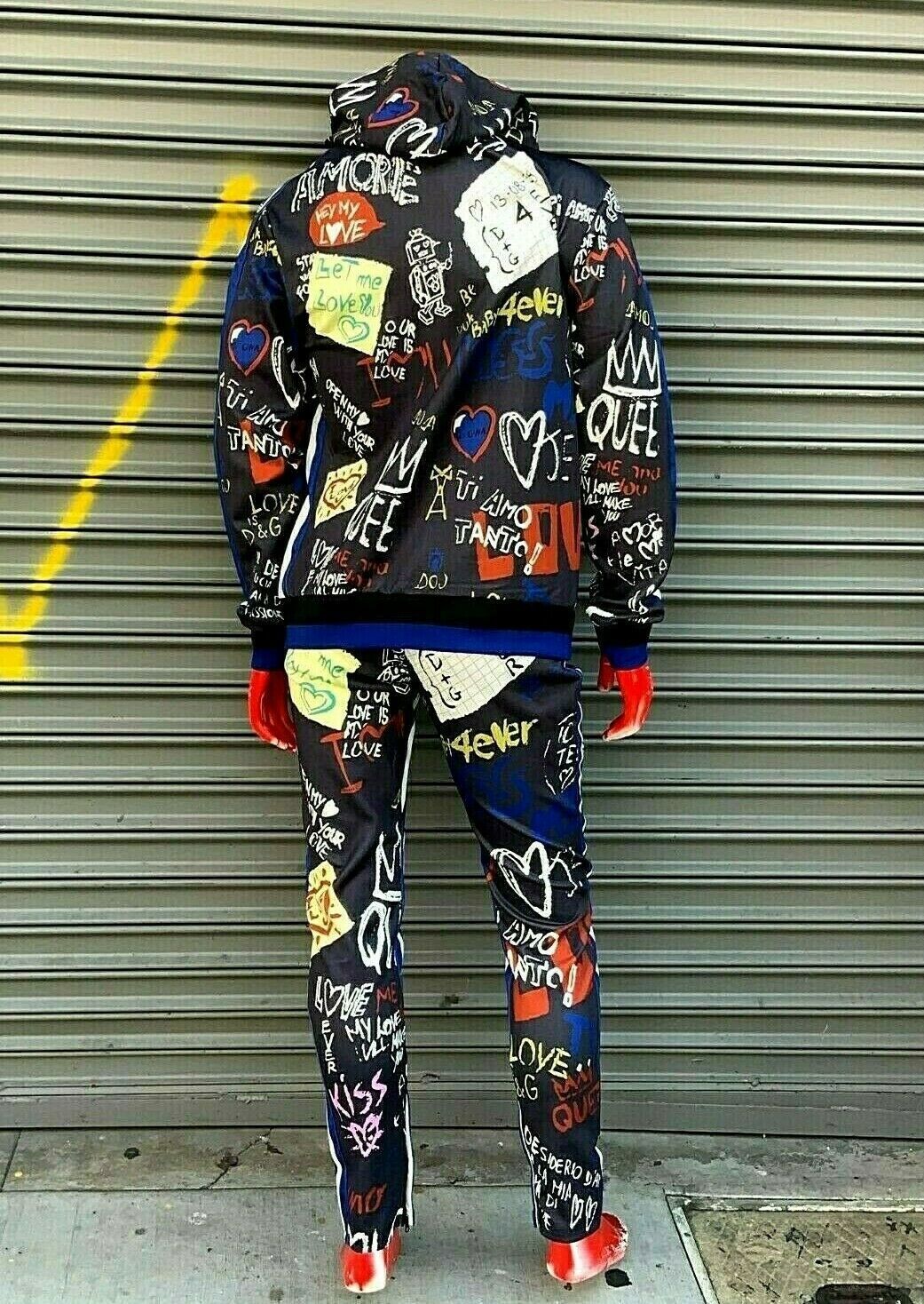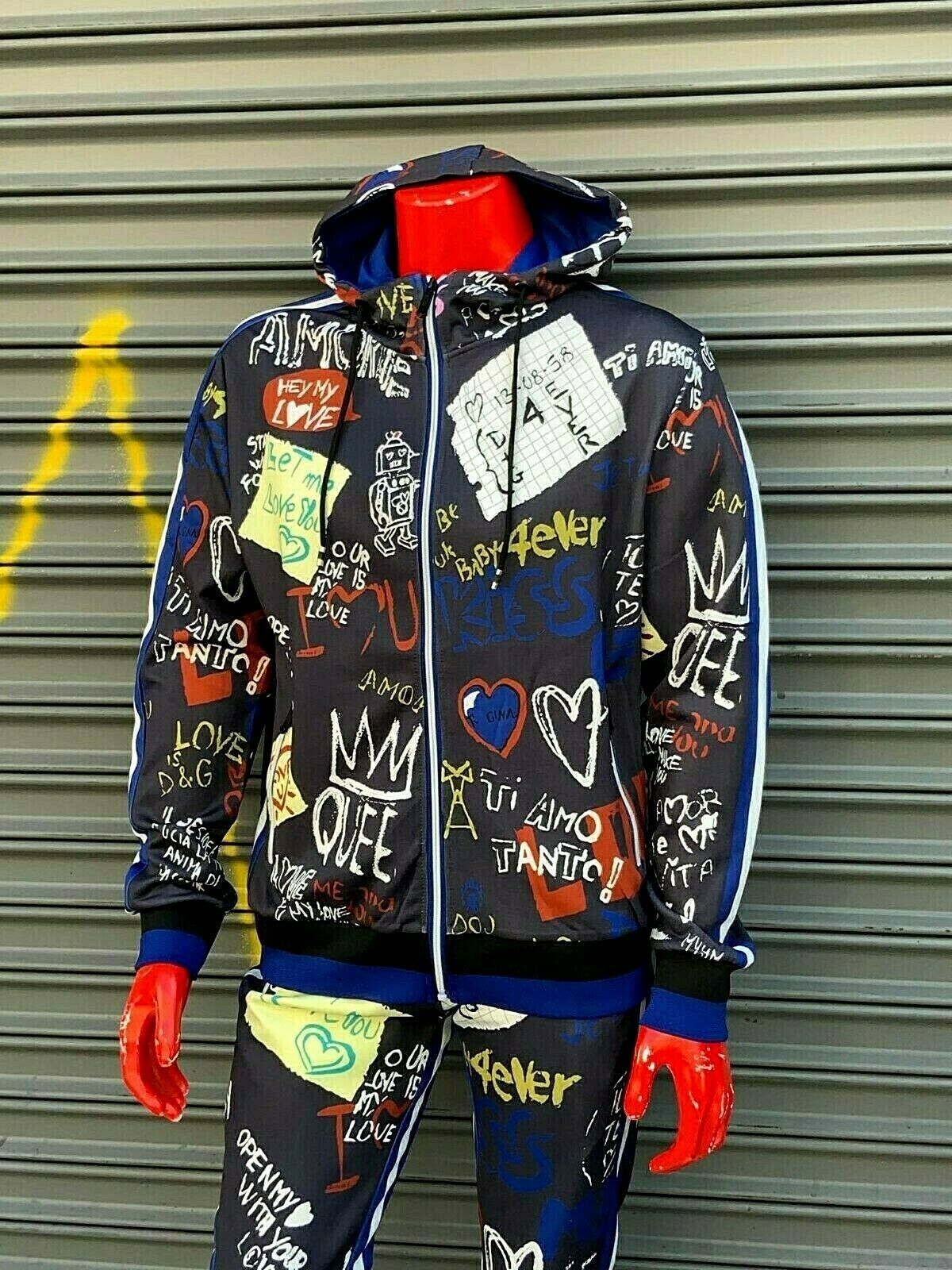 - Men's Navy | Blue | Multicolor Love Drawings All Over Fashion Tracksuit