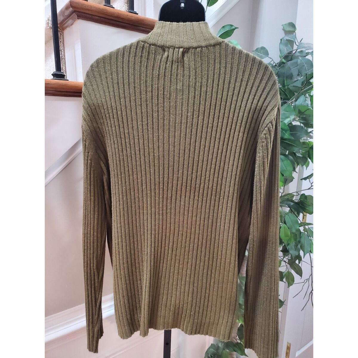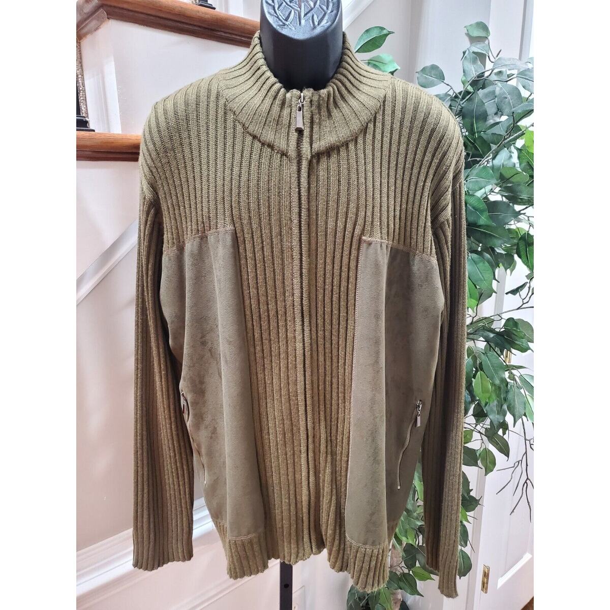 Men's Olive Green 100% Acrylic High Neck Long Sleeve Full Zip Knit Sweater .