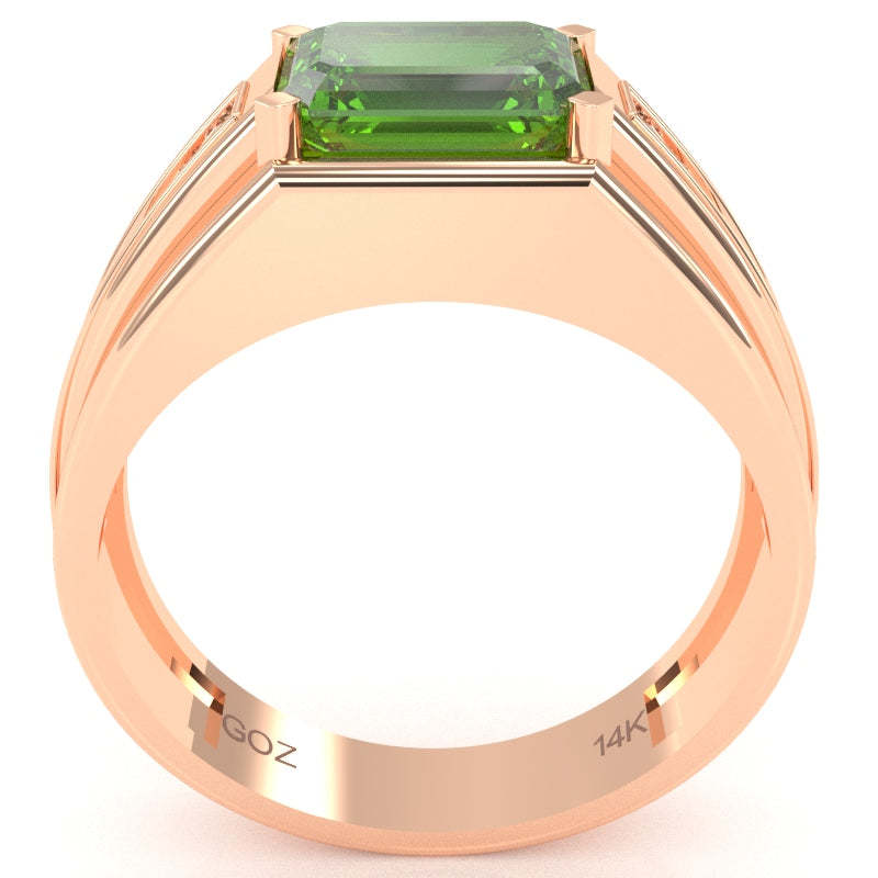 Men's Peridot Diamond Channel Ring In Solid 14k Rose Gold