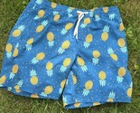 Men’s Pineapple Print Swim Trunks Shorts Medium w/ Pockets | Tropical Beachwear