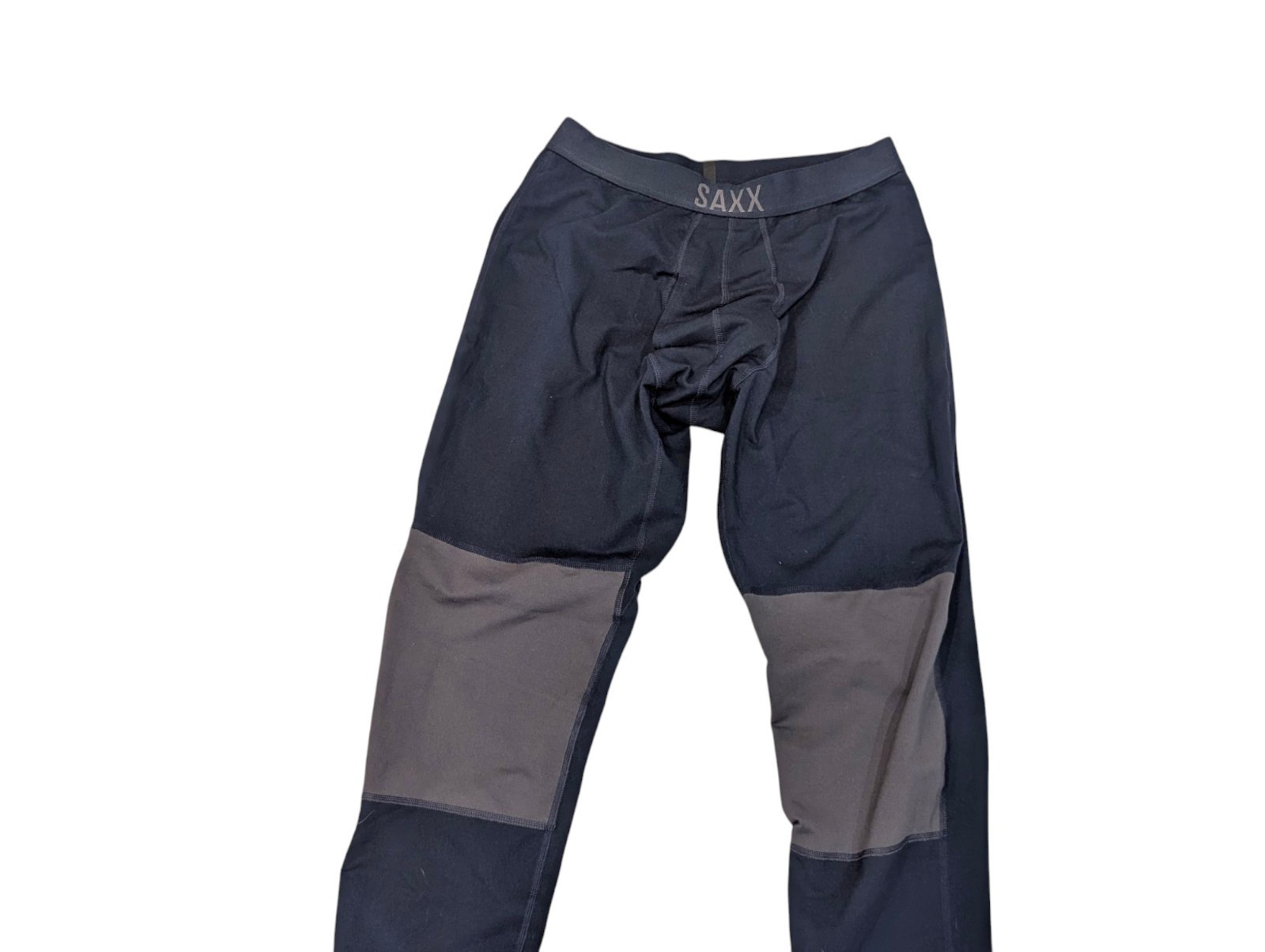 Men's SAXX roast Master heavyweight leggings size medium. Ballpark pouch. Made of 89% recycled polyester and 11% elastane. Navy and gray. These leggings are super thick and warm. They are in excellent condition!