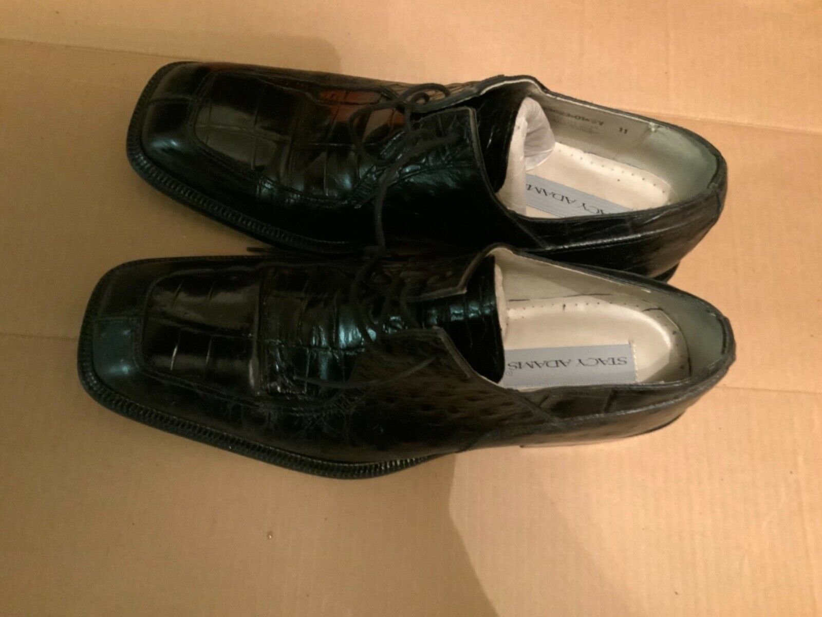 - Men's STACY ADAMS Black Crocodile Leather Oxford Lace Shoes Size 11