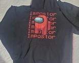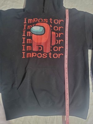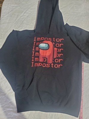 Black Hooded Imposter Sweatshirt. Graphic is in very good shape. There is no drawstring, it was pulled out. No stains or tears.