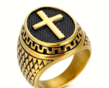 - Men's Stainless Steel Two Tone IP Gold Cross Ring