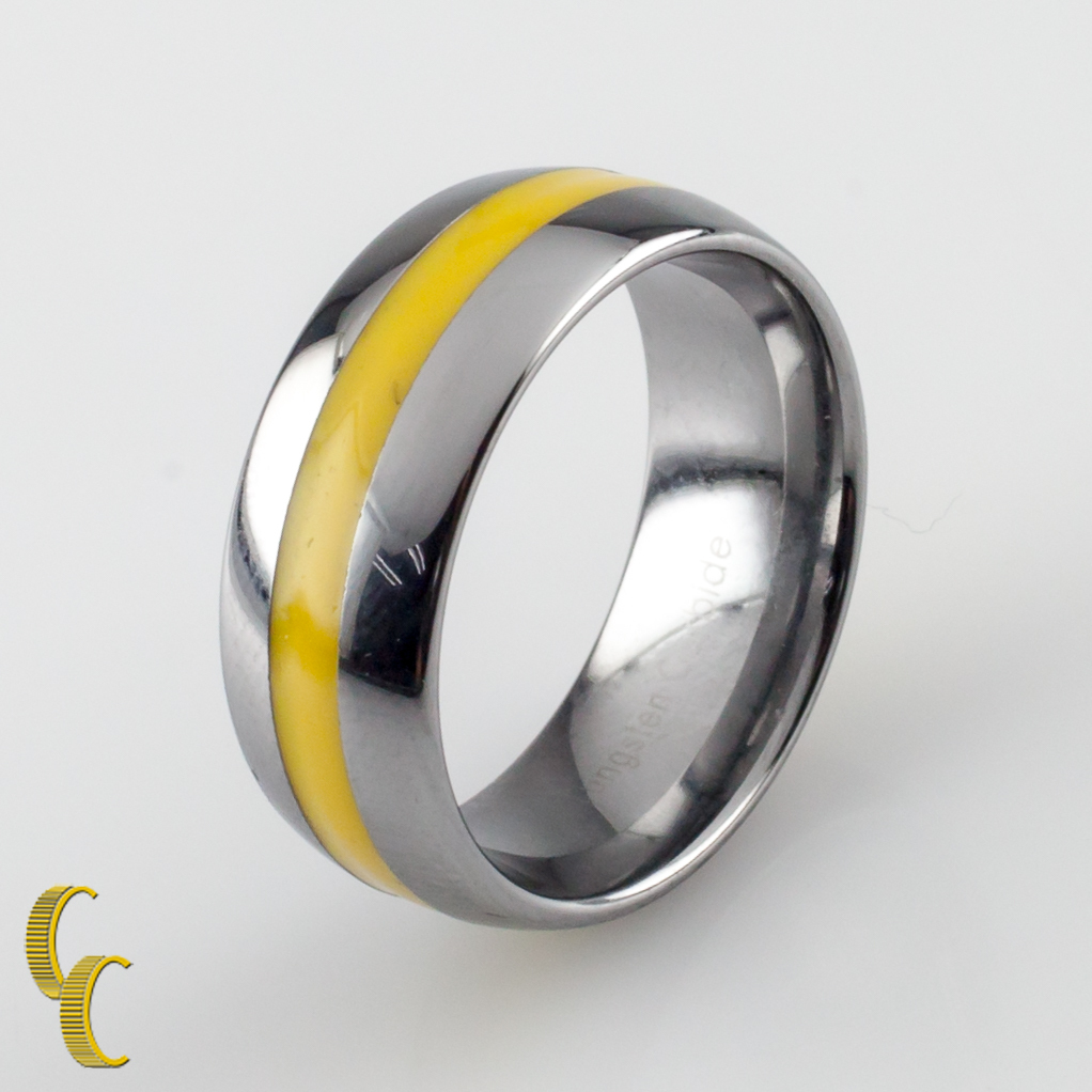 - Men's Tungsten Carbide Ring w/ Center Yellow Stripe Size 8