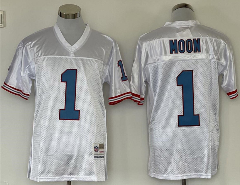 - Men's Warren Moon #1 Stitched Jersey White