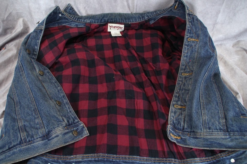 - Men's Wrangler Rugged Wear Flannel Lined Jacket Denim Size XL RJK32AN