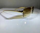 Men's rimless sunglasses with gold wire frame gradient tea color lenses. Great style at great price.