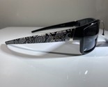 - Men's sunglasses with black lenses and black and white bandana side arms