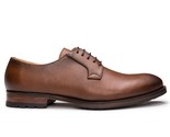 - Men shoe on brown vegan leather blucher elegant lace-up flat flexible soft sock