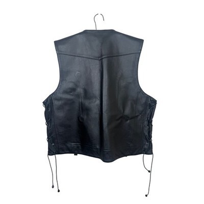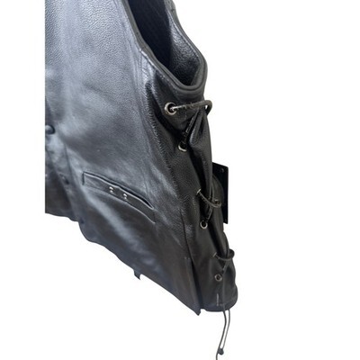 - Mens Black Leather Biker Vest Motorcycle Sleeveless Jacket Laced Sides 3XL
