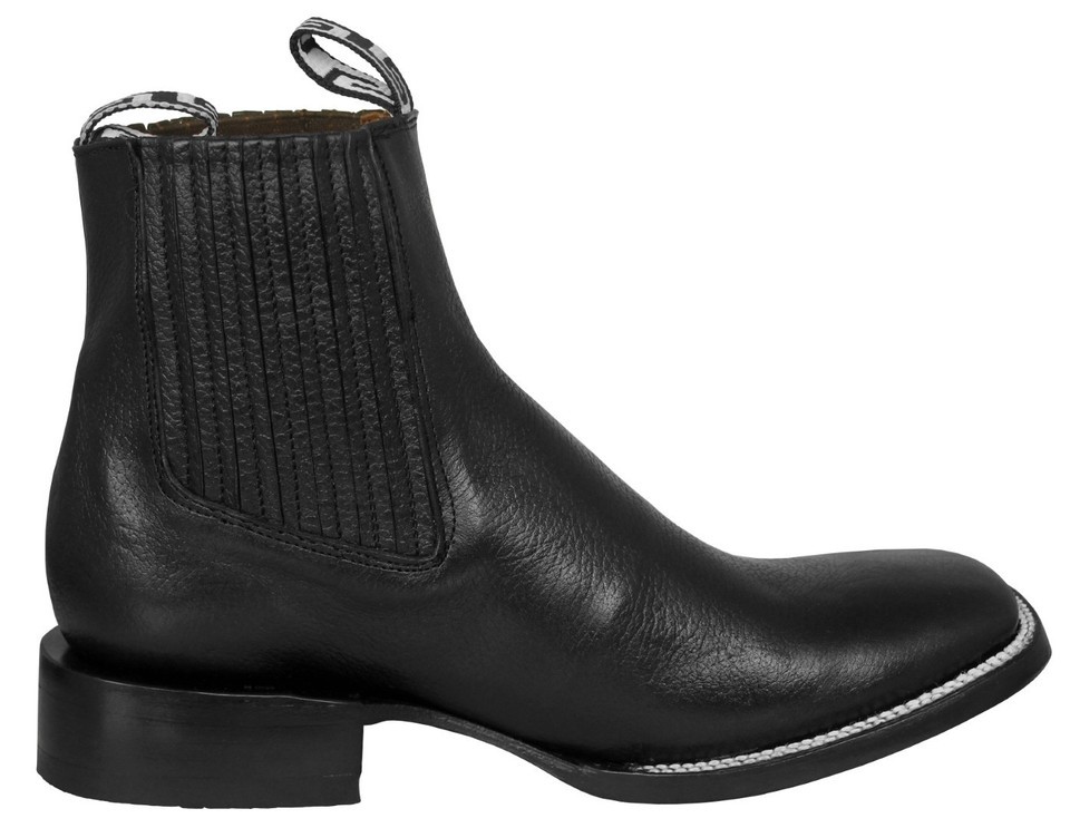 - Mens Chelsea Ankle Boots Black Leather Western Dress Classic Pull On Square Toe