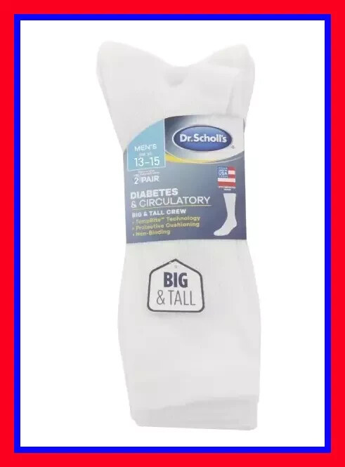 - MENS DR. SCHOLLS DIABETES CIRCULATORY TempRITE WHITE CREW SOCKS 13-15 2 PAIR