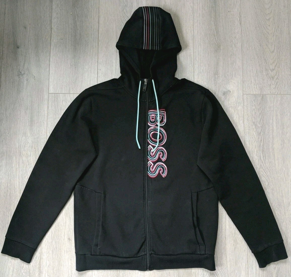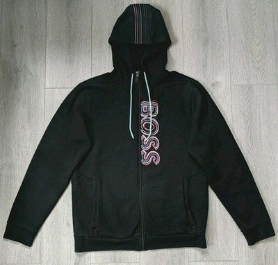 - Mens Hugo Boss Saggy 1 Multi Logo Zip Up Hoodie Black Large