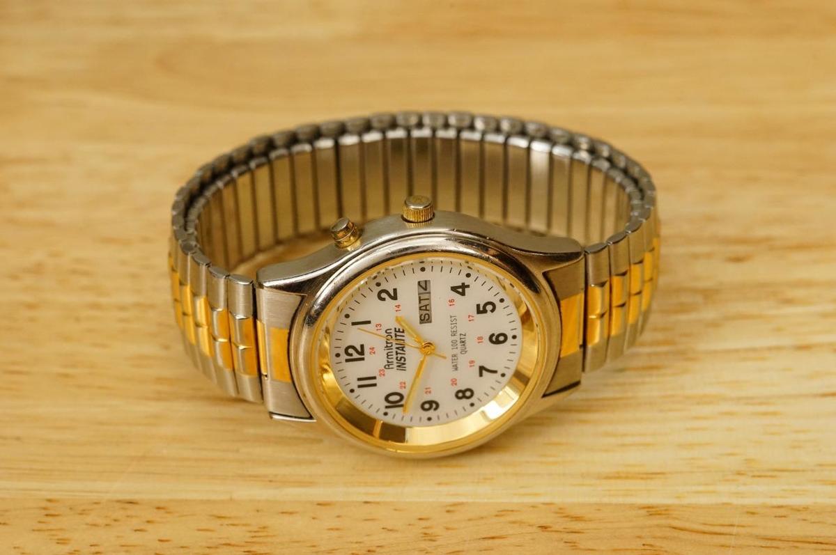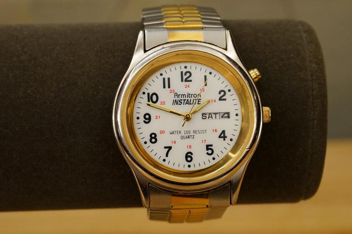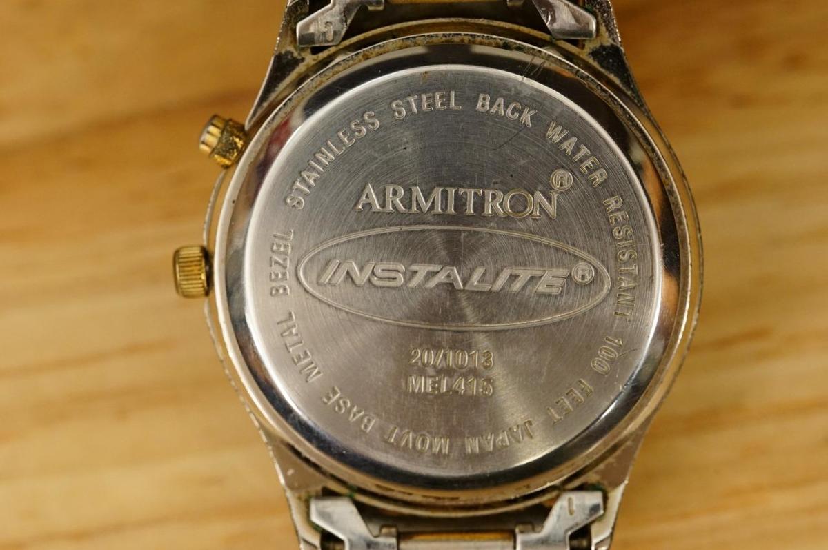 Mens Jewelry Armitron Instalite 20/1013 Calendar Date Watch Two Tone Expansion band. 31MM across the crystal. 37MM across the face.