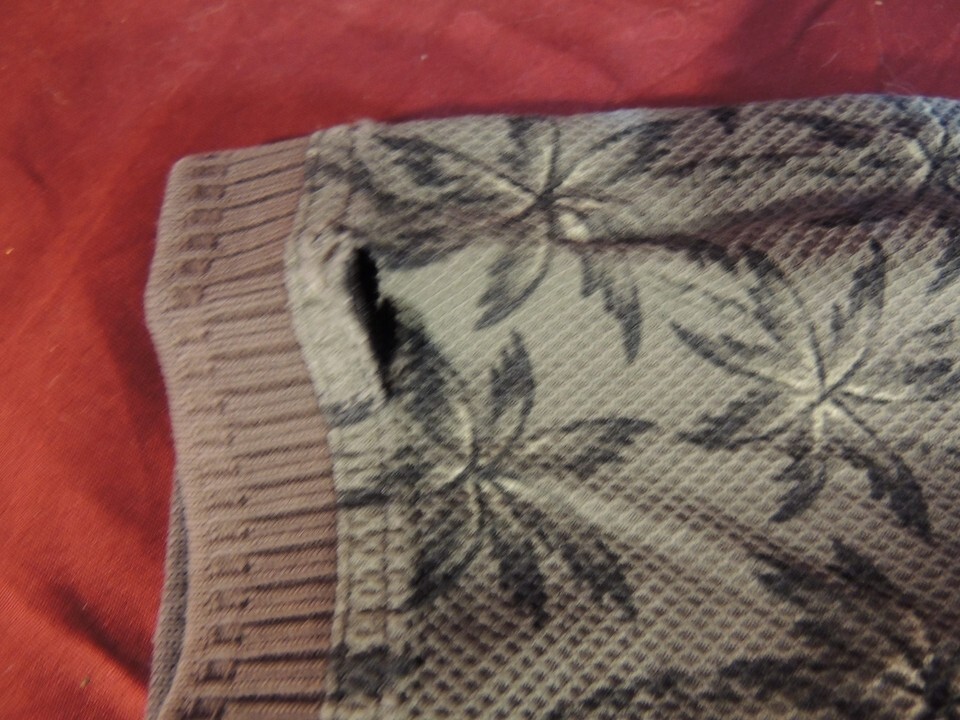 Some holes at sleeve ends. A couple small stains. / NOTHING TOO NOTICEABLE