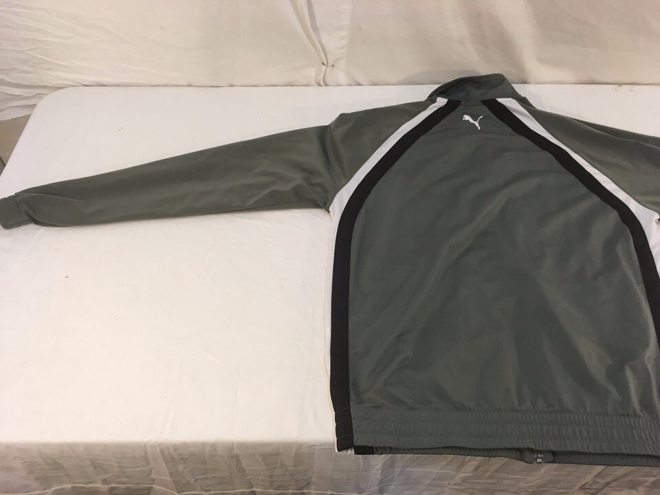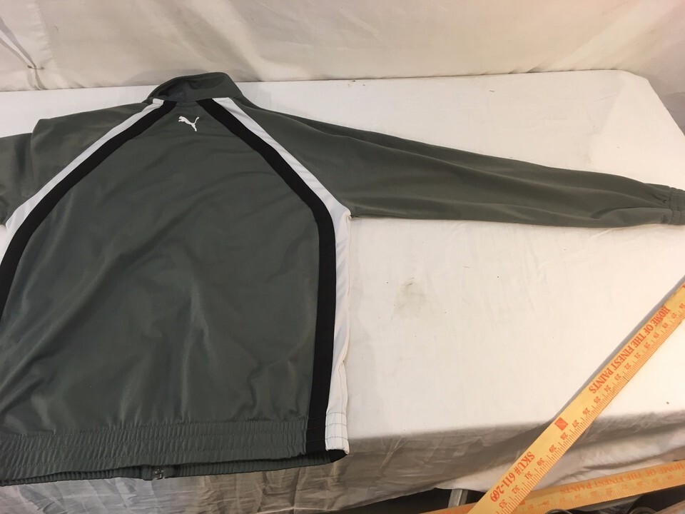 - Mens Puma Gray White Black Striped Large Full Zipper Polyester Track Jacket