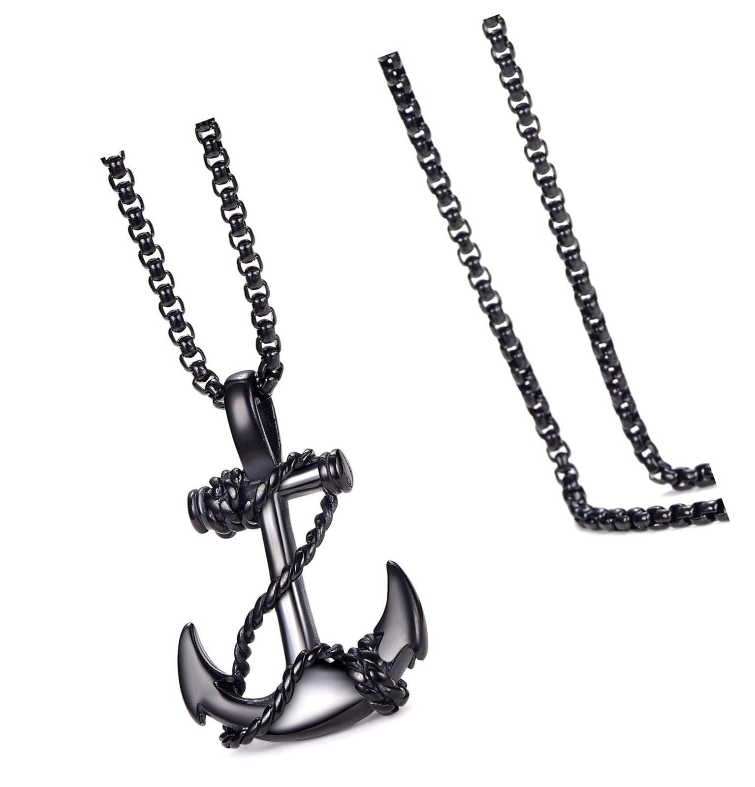 - Mens Stainless Steel Nautical Anchor Necklace Navy