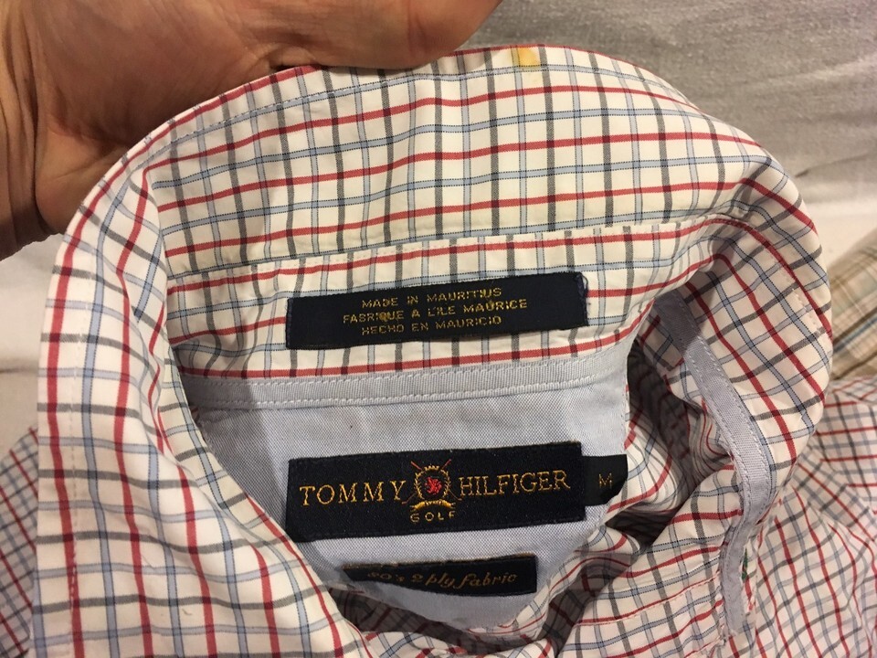 DEFECTS : Timberland Shirt Has A Small Tear Near A Button On It Tommy Hilfiger Shirt Has A Very Small Stain On Its Collar ~ See Photos