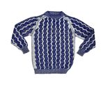 Mens VTG 1970s Blue White Intarsia Acrylic Sweater Squiggly Stripe Coogi Style L