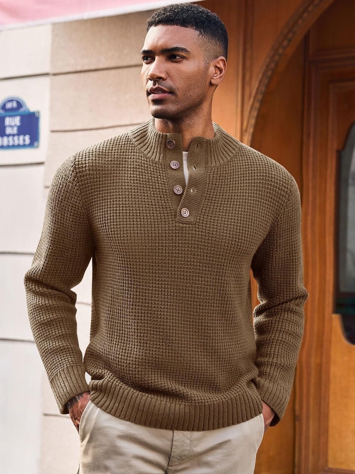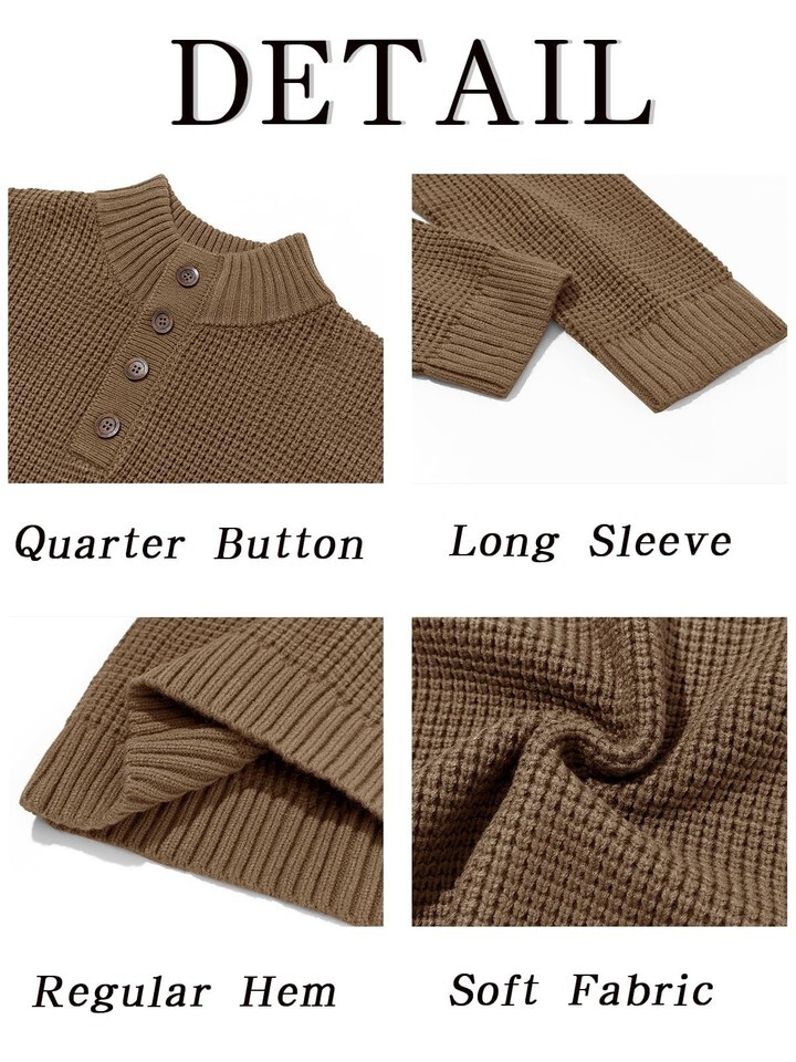 Features: This knit regular fit henley sweater for men designed with 1/4 button collar, long sleeve, ribbed cuffs and hem, waffle textured pattern, solid color and slim fit style. The stand collar tops provide a modern and stylish look, adds a touch of sophistication to your outfit