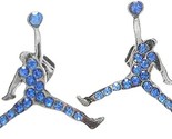 Mens and Womens Silver-Plated Basketball Player Slam Dunk Man Earrings | Blue Crystal Rhinestones Iced Out CZ Stud Earring