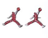Mens and Womens Silver-Plated Basketball Player Slam Dunk Man Earrings | Red Crystal Rhinestones Iced Out CZ Stud Earring