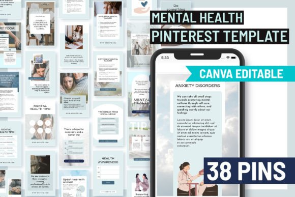 You will receive 38 Mental Health Pinterest Template-Blue.