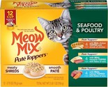 - Meow Mix 12 Cups Paté & Shreds Wet Cat Food Variety Pack, Seafood & Poultry