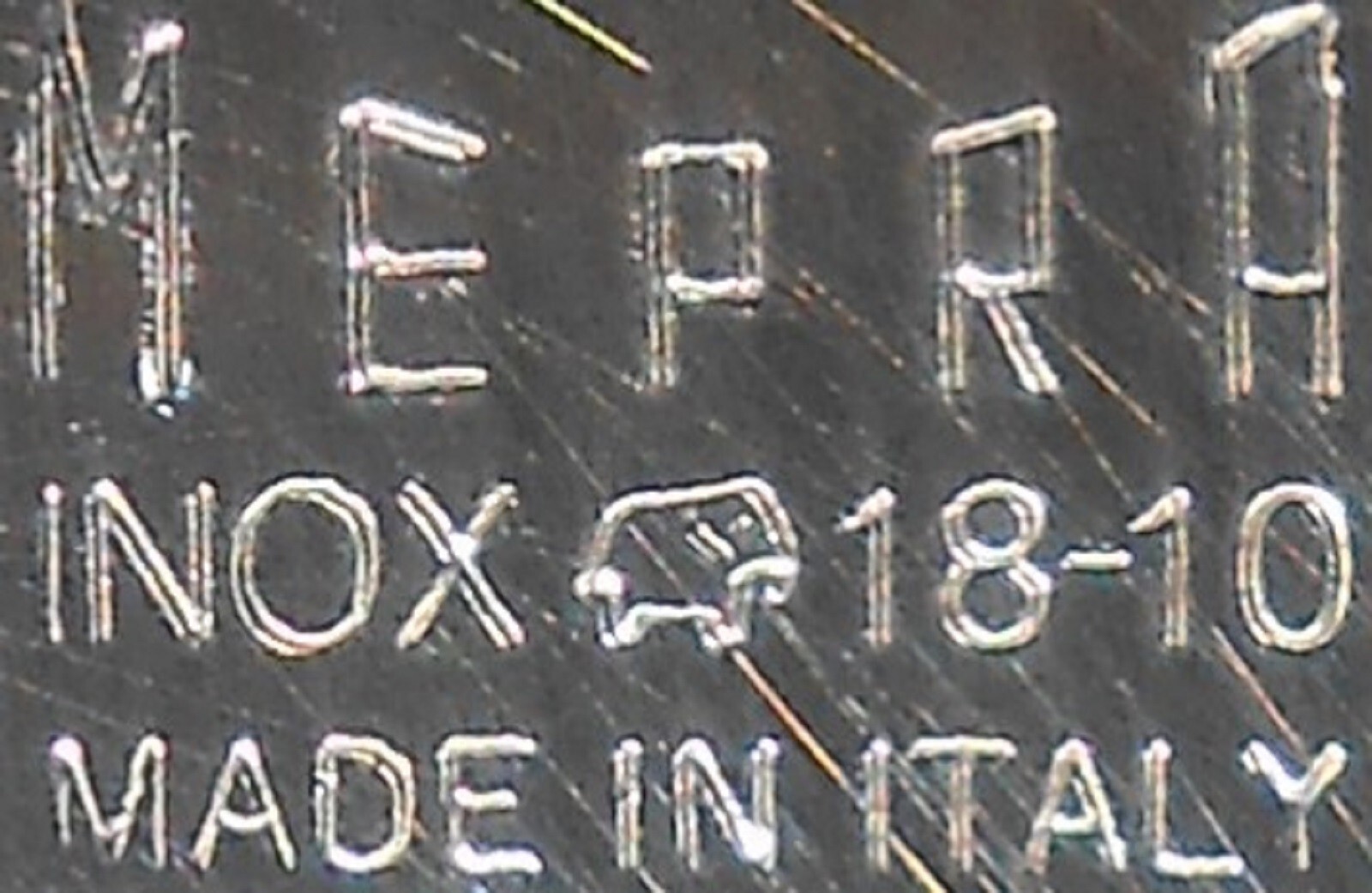 This is the MEPRA INOX 1810 Stainless Steel Ice Bucket that measures approx 7 3/8" tall to rim and approx 9 1/4" in diameter at top opening. It is in good pre-owned condition - has some light scratches from washing on the exterior. ***It is all the same color but the photos show reflections in the surroundings***