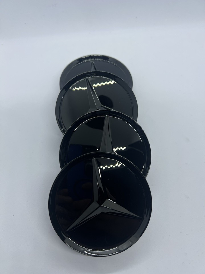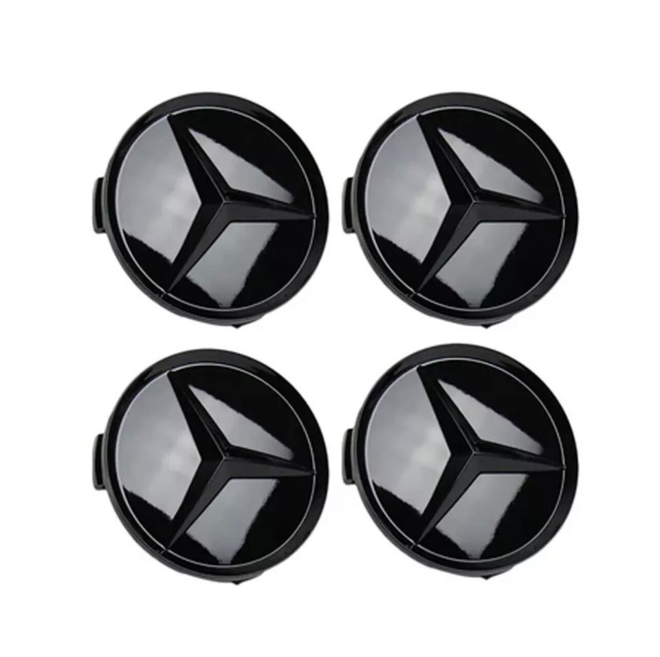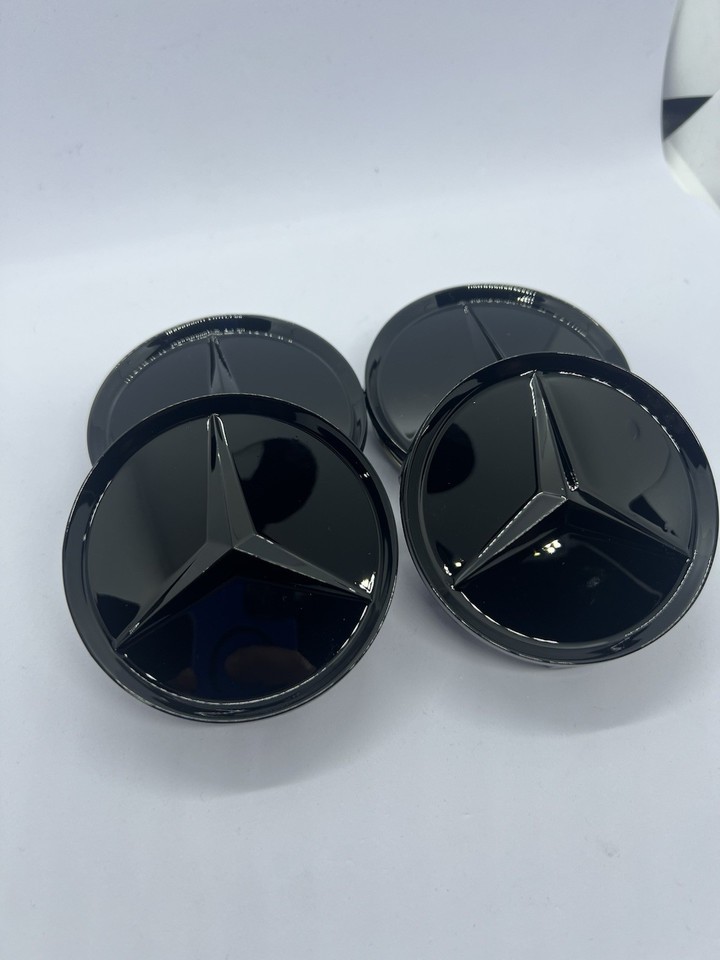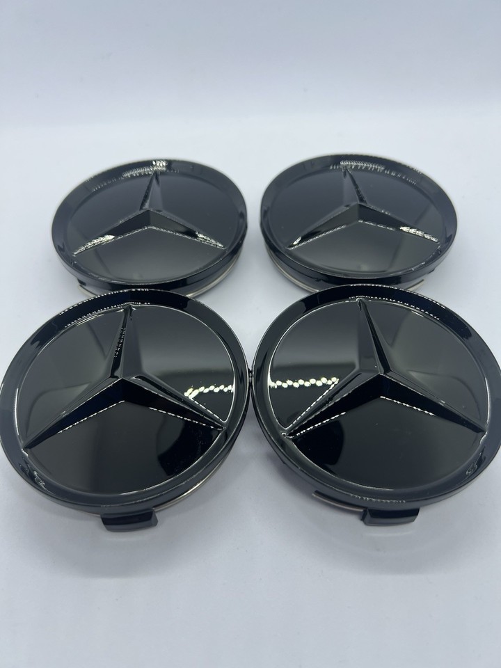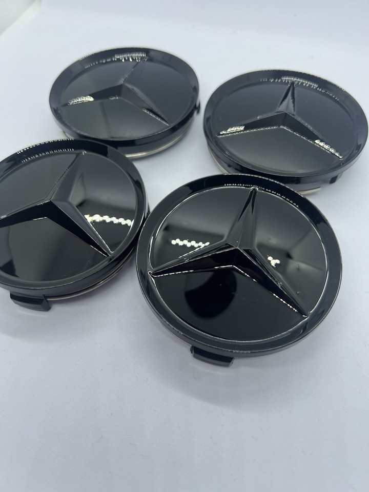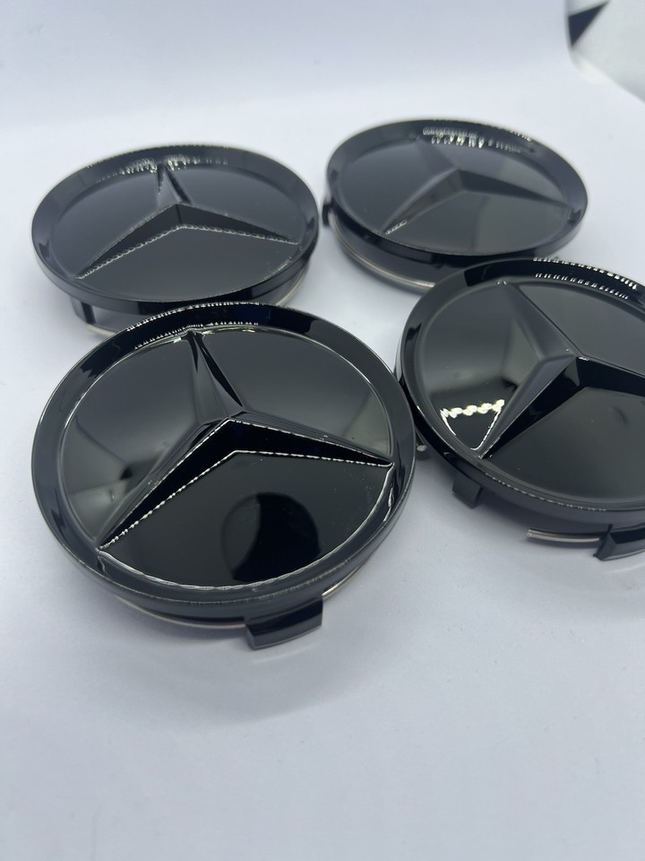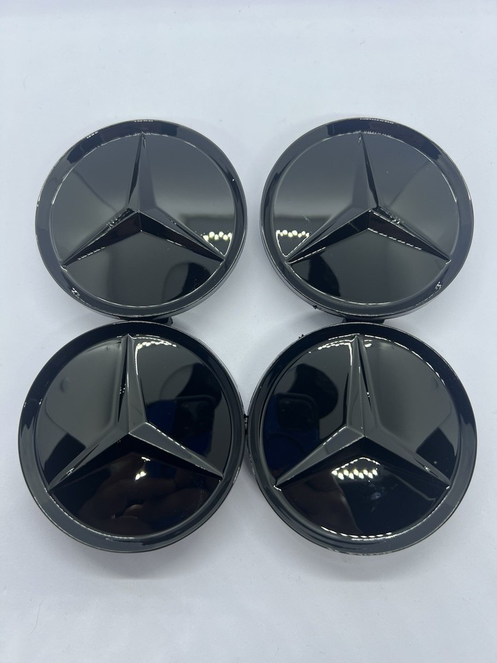- Mercedes Benz Black Glossy alloy wheel center caps hubcaps 75mm