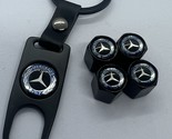 Mercedes Benz Set Of 4 Black Tire Valves, Stem Cap Keychain