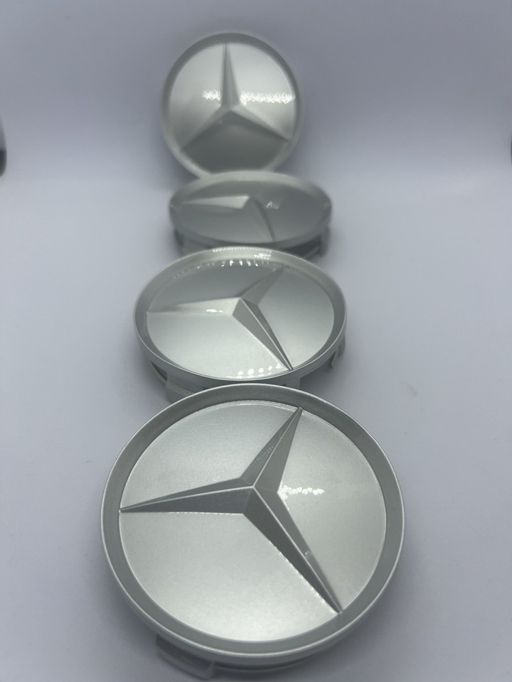 - Mercedes Benz Silver Matte alloy wheel center caps hubcaps 75mm