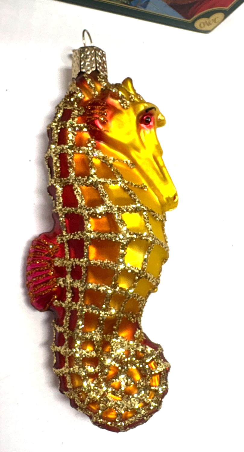 - Merck Family Old World European Glass Seahorse Christmas Ornament NIB