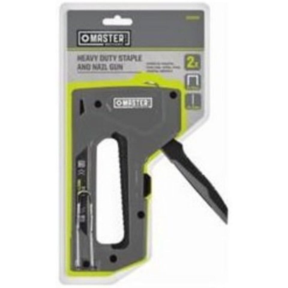 Master mechanic, 2-in-1, heavy duty, staple gun, high low power switch for driving control, integrated staple Puller, bottom loading jam free magazine, reversible belt clip, refill indicator window, compatible with Arrow T50 staples brad nails: 1/4" TV #137-190, 5/16" TV #137-364, 3/8" TV #137-406, 1/2" TV #139-337, 9/16" TV# 353-562 1/2" 5/8" 18 gauge brad nails.