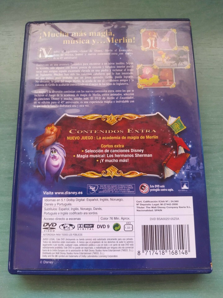 - Merlin El Encantador WALT DISNEY Clasicos - DVD Español Inglés Región 2 - AM