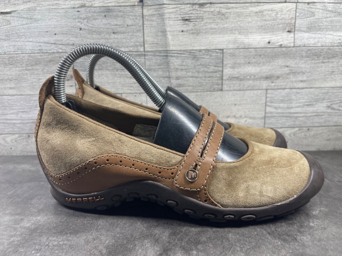 - Merrell Mary Jane Womens Plaza Bandeau Shoes Brown 8M Suede Wedge Moc Slip On
