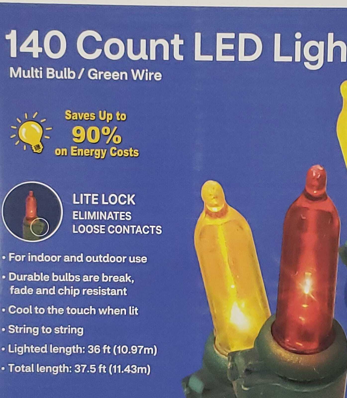 - Merry Brite 140 Count LED Mini-Style Light Multi Bulb / Green Wire
